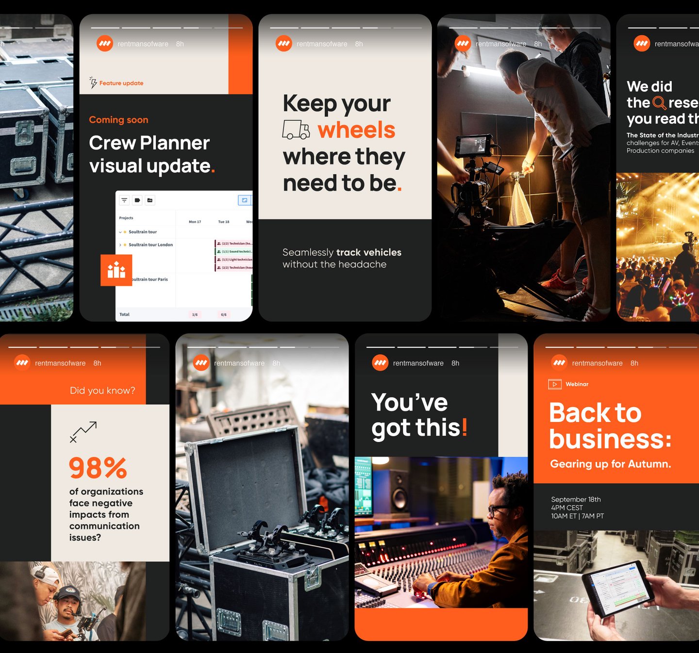 Rentman's team felt that their brand did not reflect the evolution they had undergone as a company in recent years. So, we revisited their brand strategy and created a visual identity reflecting the versatility and adaptability of their platform and products.